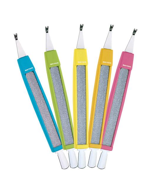 El Beter Cortacutículas de triple uso es ideal para eliminar las cutículas, despejar tus uñas y limarlas rápidamente. Gracias a su diseño práctico, permite un cuidado eficaz de las uñas. Utiliza el bajapieles (1) situado en el extremo angulado del mango para empujar suavemente las cutículas del entorno de la uña. A continuación, elimínalas fácilmente con la cuchilla (2) y, para terminar, lima tus uñas siguiendo su forma natural siempre en la misma dirección (3).