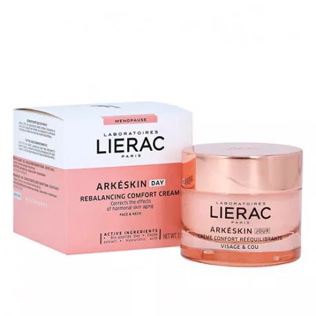 La crema de día Arkéskin corrige los signos de la menopausia en la piel, como la sequedad y pérdida de densidad y firmeza. Inspirada en la cronobiología, esta crema es una combinación de un biopéptido nutritivo de día que reactiva la protección de la piel, extracto de coco, que recupera la elasticidad de la piel, y ácido hialurónico hidratante. Compuesta por un 96% de ingredientes de origen natural, posee una textura fundente y refrescante que se fusiona con la piel, aportando una nutrición adecuada sin efecto graso. Su fragancia, con notas energizantes de rosa, deja la piel delicadamente perfumada. Para un resultado óptimo y ayudar a recuperar el equilibrio de la piel durante la menopausia, utilizar en combinación con el Fluido Nutritivo Redensificante Noche Arkéskin.